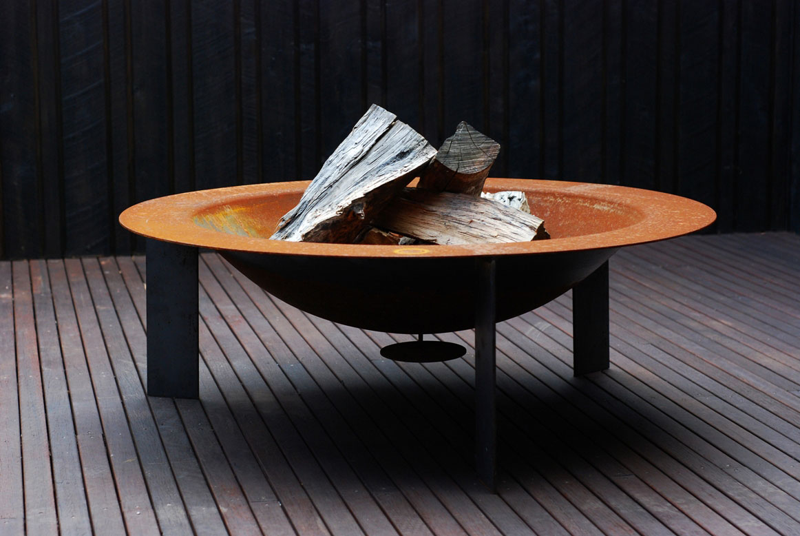 Hand spun from 4mm steel, the LifeSpaceJourney fire pit is designed to be both aesthetically pleasing and heavy duty. Elevated off the ground on three 6mm thick steel legs, the design avoids radiant heat damage to anything under the pit making it ideal for backyard use.