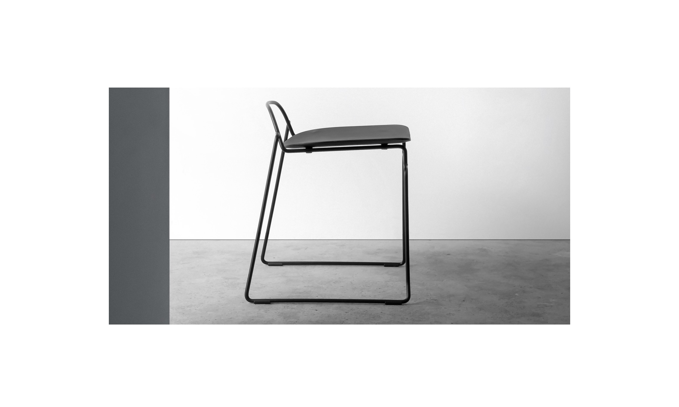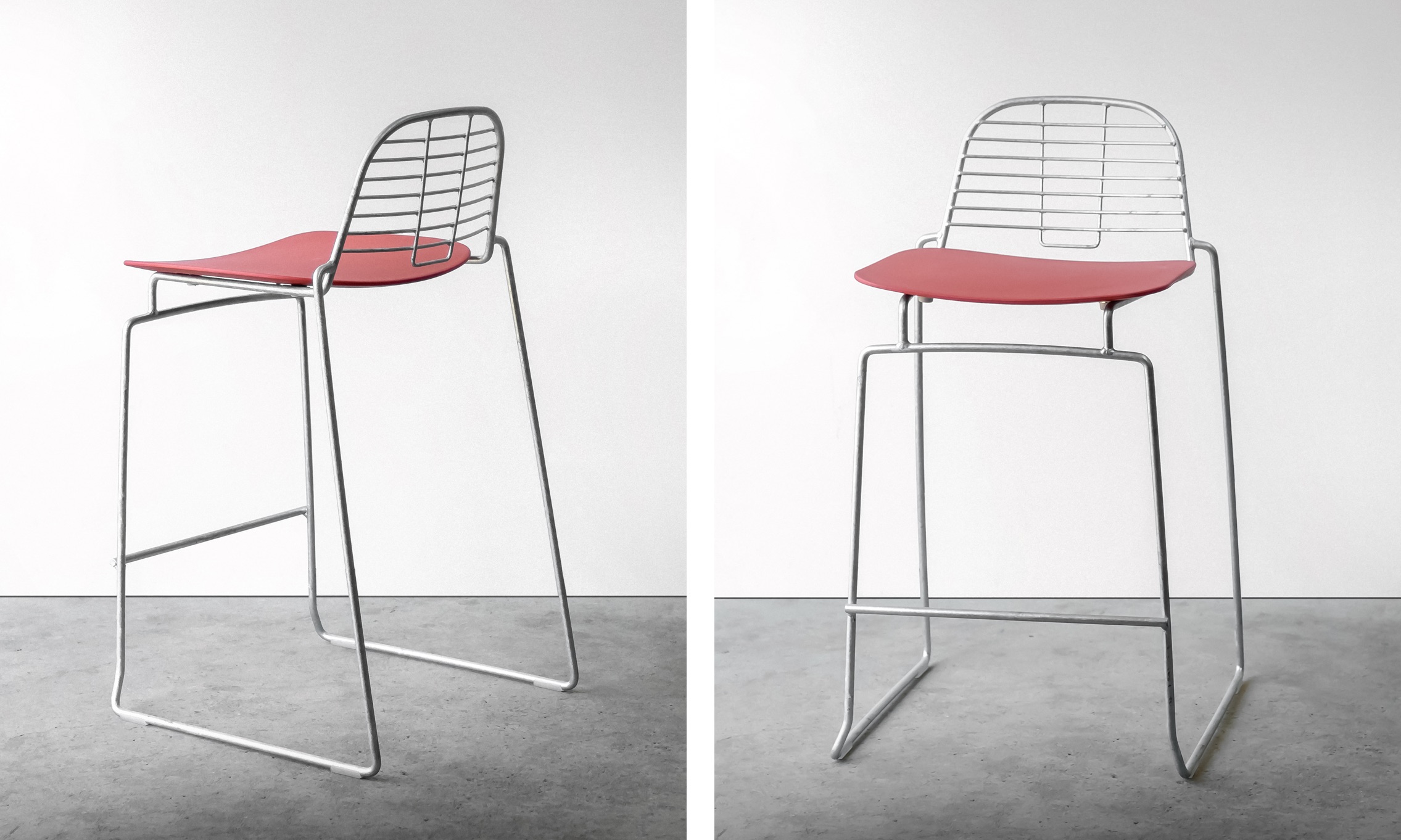 PIGGYBACK, designed by Luke Mills for LifeSpaceJourney, is a chair that features a delicate, lightweight yet strong structure formed by the tried and true technique of wire forming. This lightweight wire chair is stackable, very comfortable, looks great and has personality. PIGGYBACK is available with either a ply seat, or a moulded plastic seat for outdoor use and a bar height version with either seat option.
